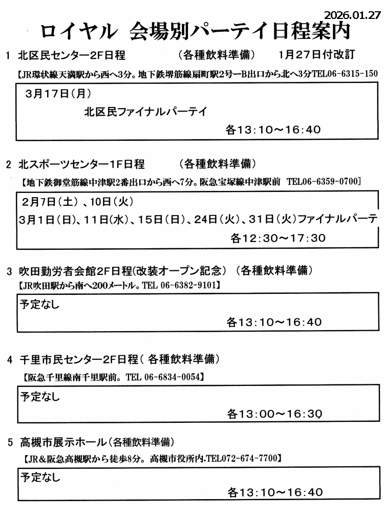 会場別パーティ日程: