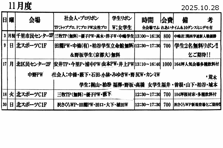 ※ 中止・変更などにご注意ください(この情報は 2025.10.28 提供です)