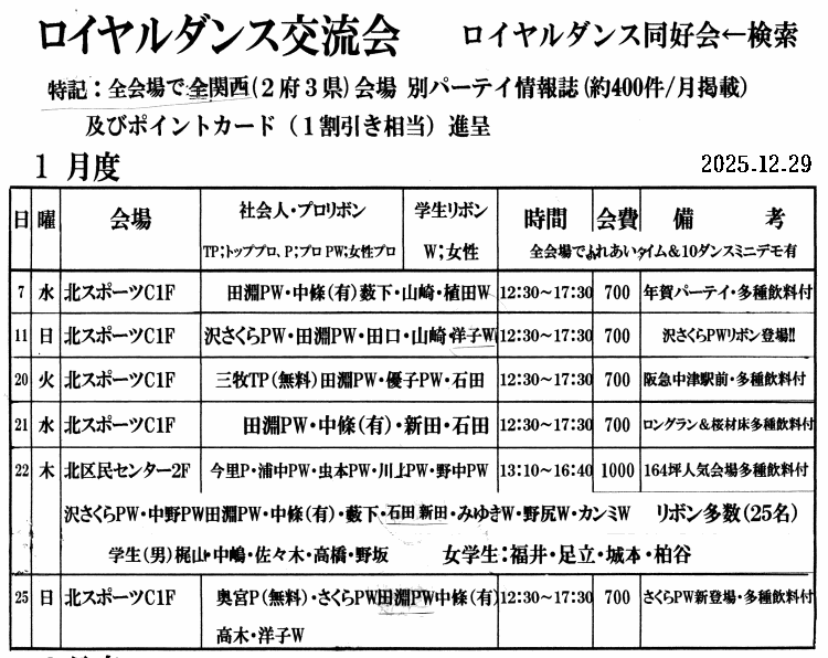 ※ 中止・変更などにご注意ください(この情報は 2025.12.29 提供です)